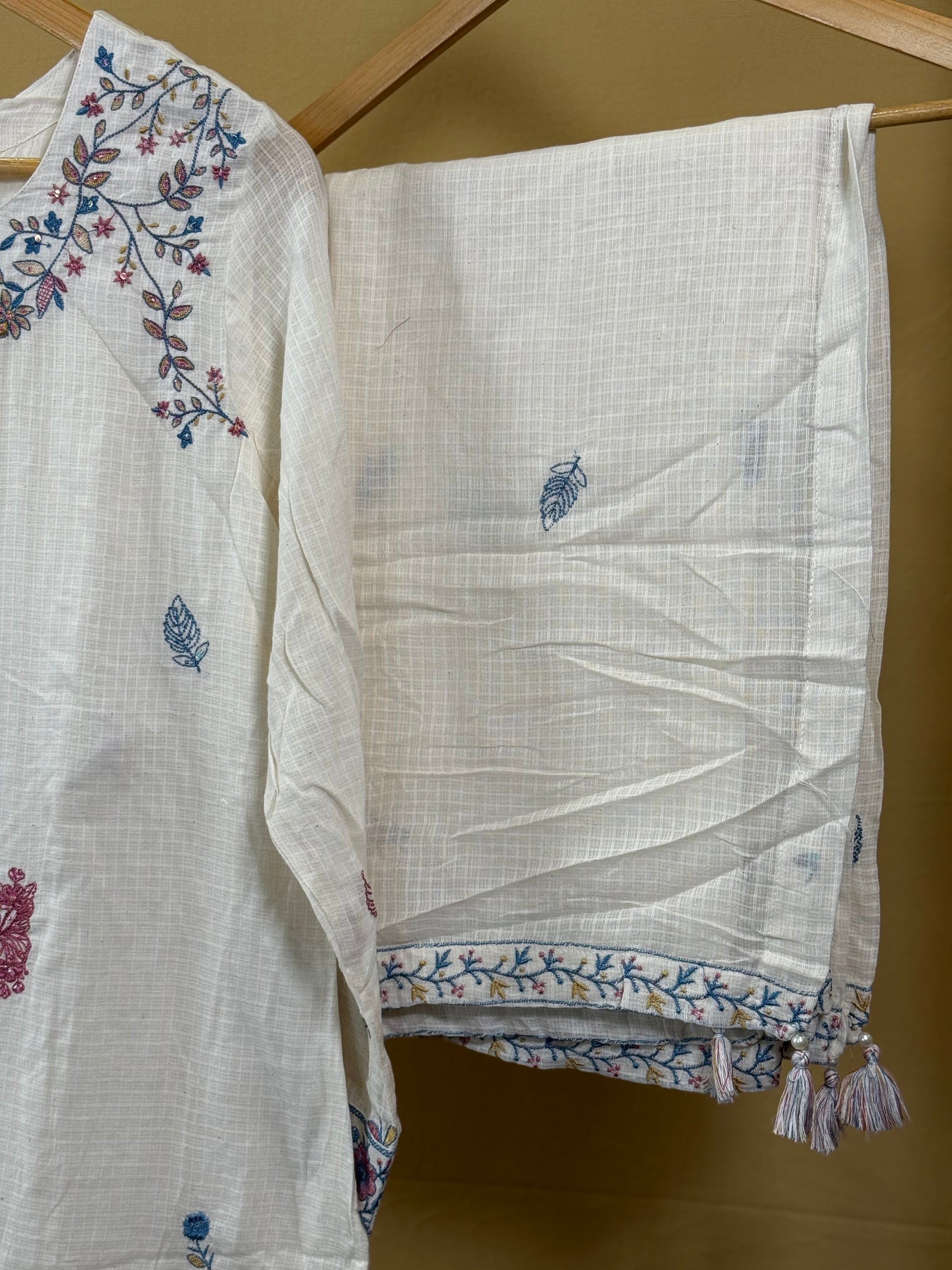Ivory Floral Embroidered Kurta Set with Dupatta